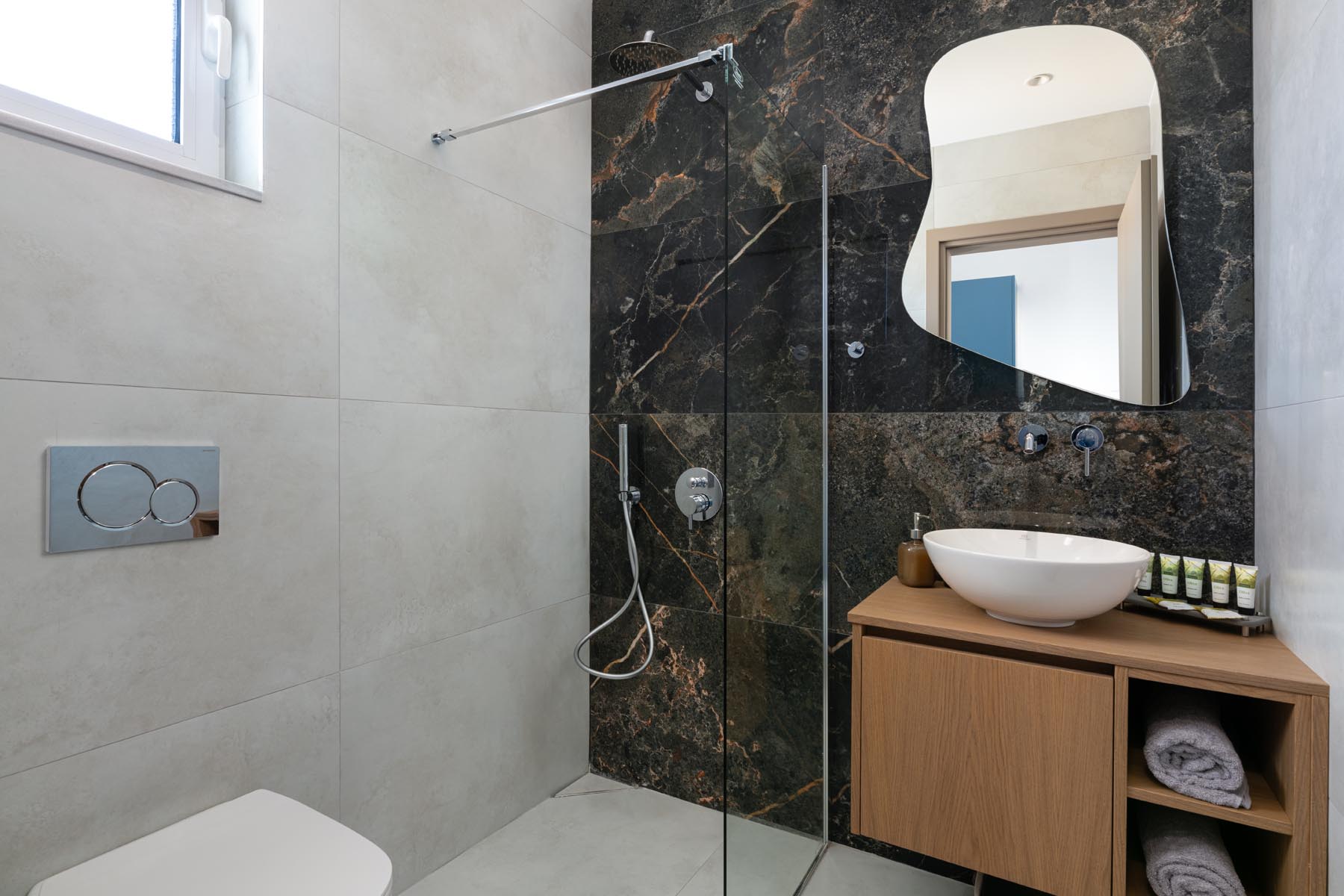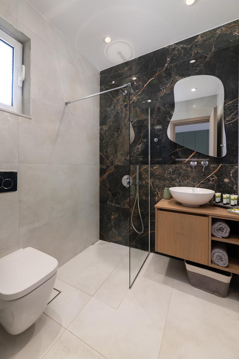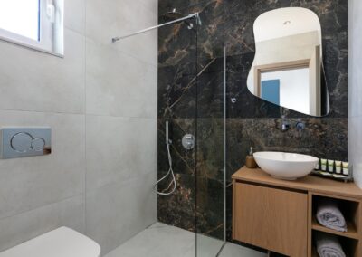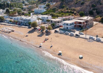 Seamlessly integrated into its natural surroundings, the space features soft geometries and natural materials like stone, wood, and whitewashed surfaces. Openings frame the Aegean light and blue, inviting guests into a state of inner and outer harmony.