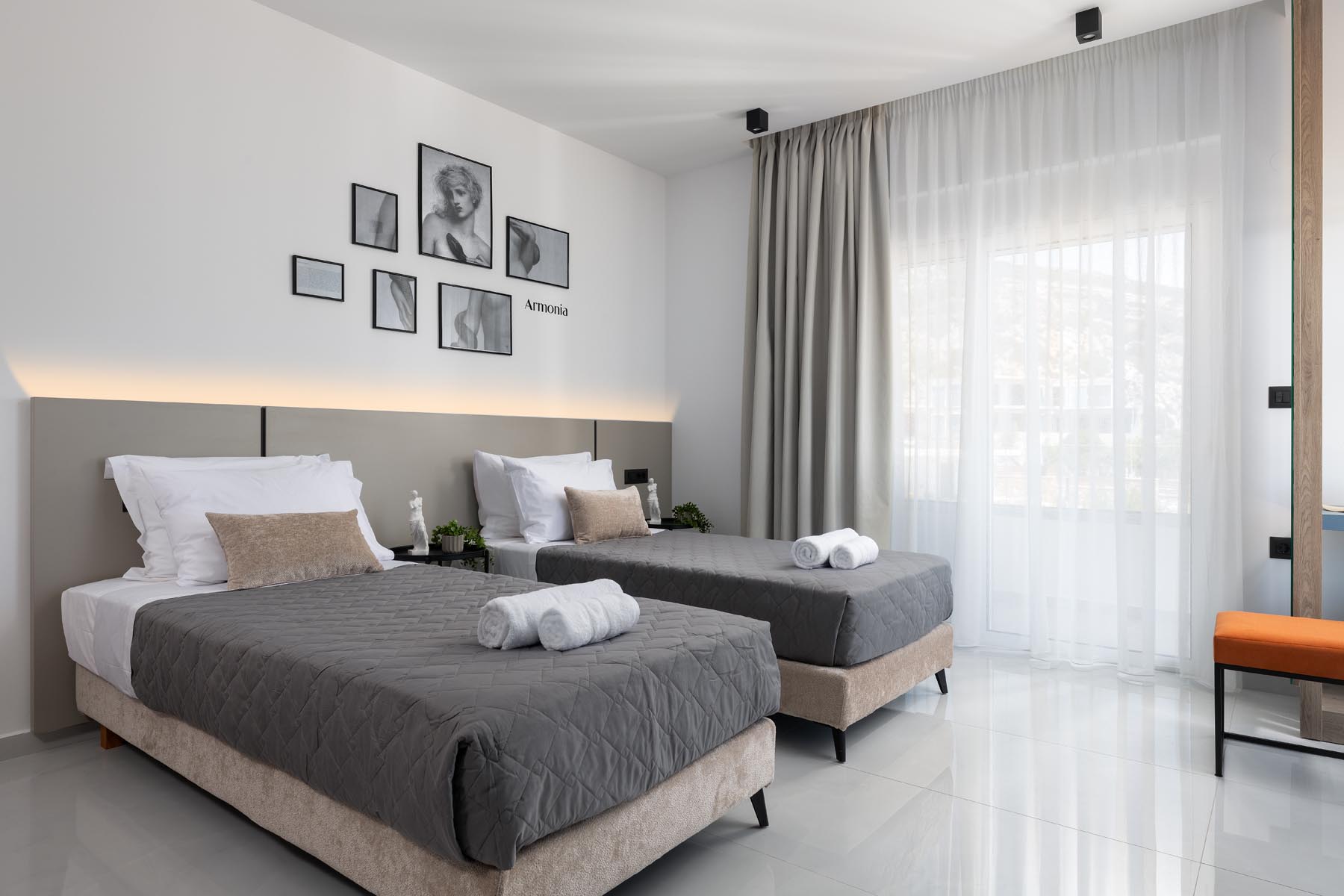 In the tranquil landscape of Stegna, Rhodes, a retreat has been thoughtfully designed, inspired by the goddess Armonia — symbol of balance, aesthetic order, and the union of opposites in ancient Greek thought.
